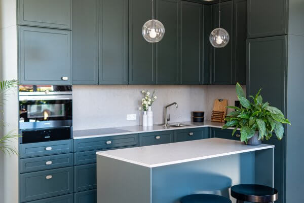 Zabudowa w kształcie litery „U” oraz wysokie słupki zapewniają dużo miejsca do przechowywania bez wizualnego przeładowania.