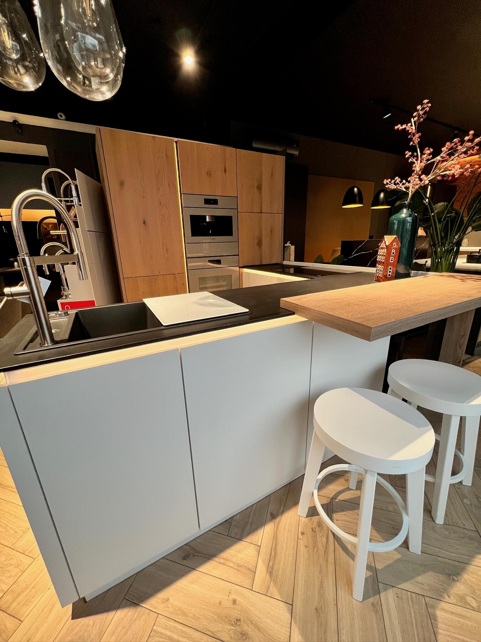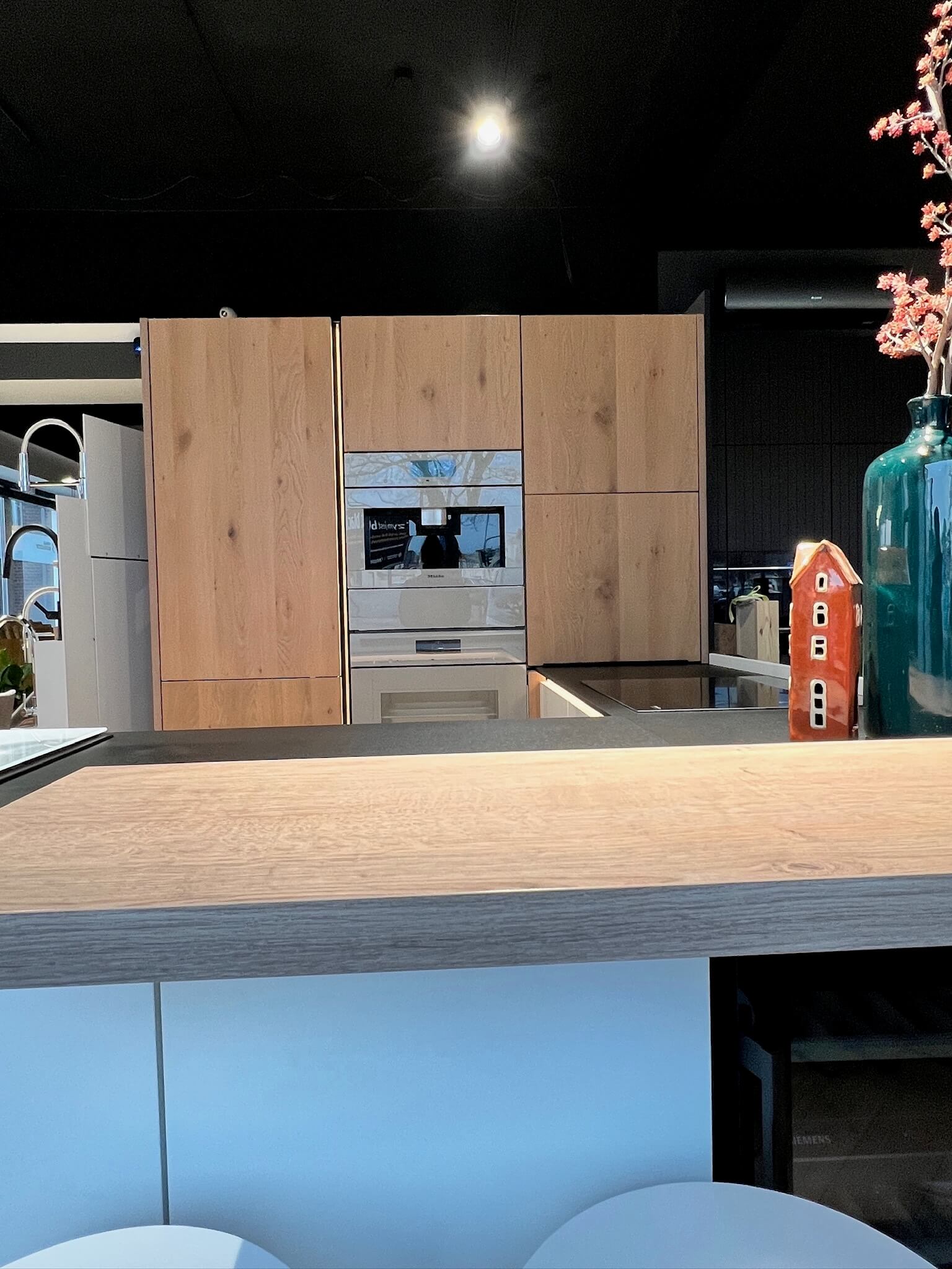 Kuchnia ekspozycyjna Nolte Tavola – fornirowany dąb, układ w kształcie litery U